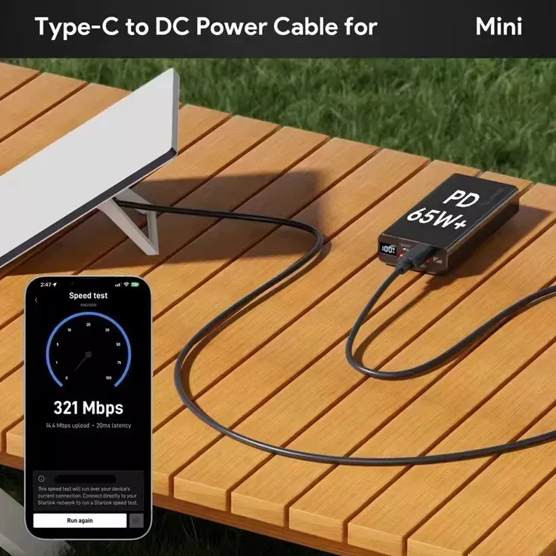 ✔ Leve seu Starlink Mini para aventuras – Conecte diretamente a powerbanks portáteis!